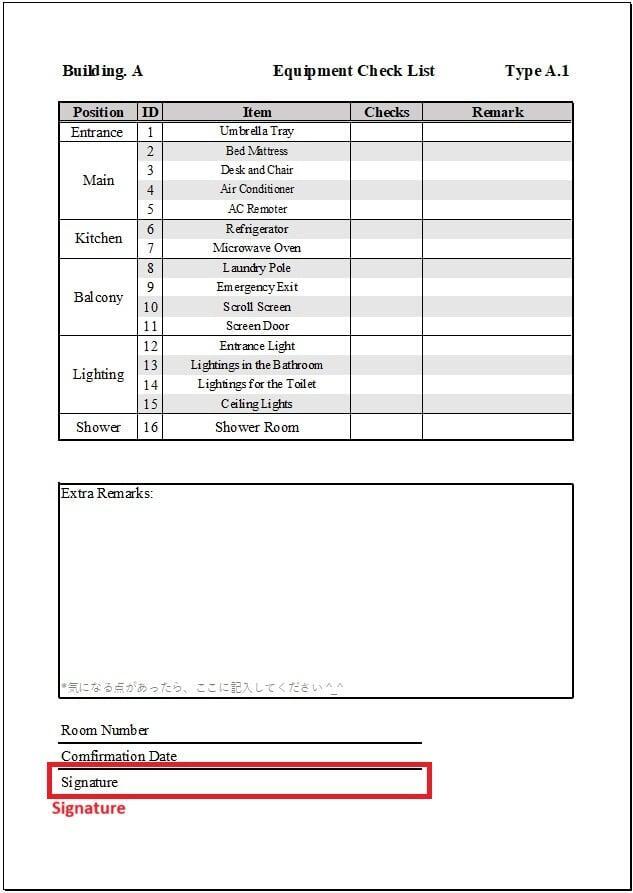 - Precautions when Moving in(入居者注意事項)