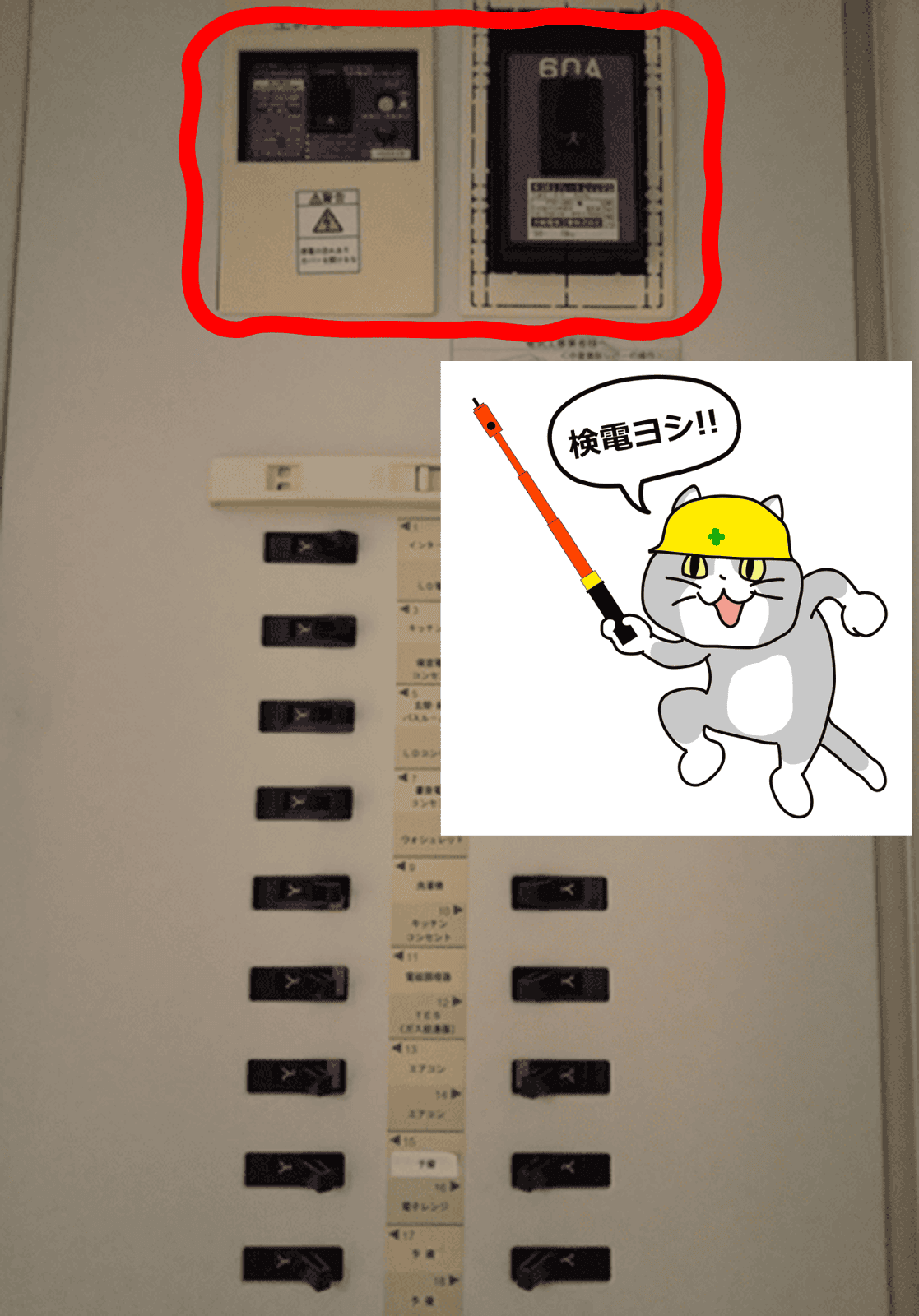 ブレーカーは落雷によるサージ電流や漏電などを感知して電流を遮断することで火災・感電事故を防ぐための設備です。初めて入居される際にはブレーカが下ろされていますのでご自身で上げていただく必要があります。A棟B棟では玄関の下駄箱上に設置されています。居住中に電気がつかなかったり温水が出ないなどの事態に遭遇された際には一度ブレーカーが上がっているかご確認ください。